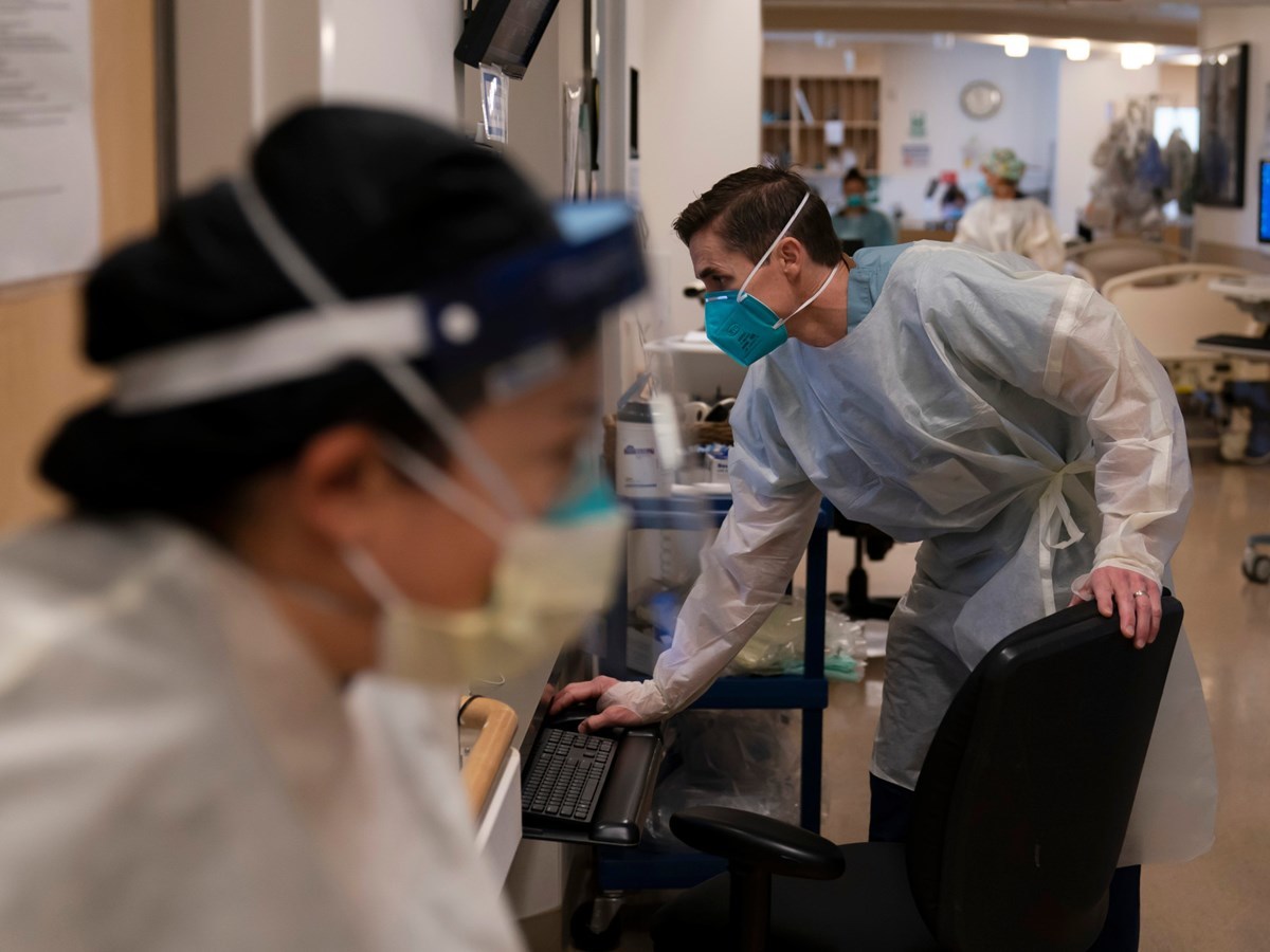 (Photo: Registered Nurse Richard Moses looks at his computer while working in a COVID-19 unit at Providence Holy Cross Medical Center in the Mission Hills section of Los Angeles, Thursday, Nov. 19, 2020 - AP Photo/Jae C. Hong)