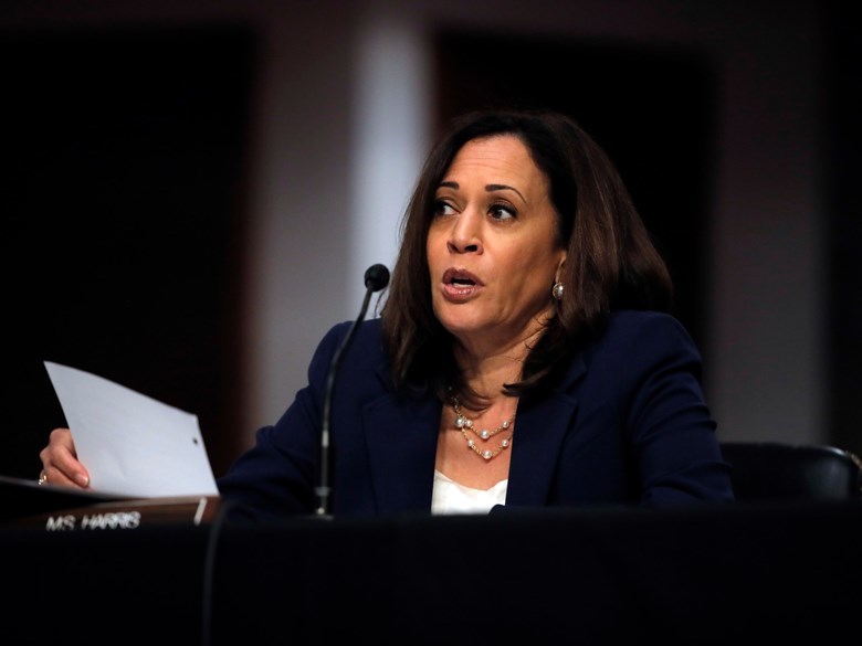 (Photo: In this June 11, 2020, file photo Sen. Kamala Harris, D-Calif., speaks during a Senate Judiciary Committee business meeting on Capitol Hill in Washington. Hearings before the Republican-led Senate Judiciary Committee will begin Monday, Oct. 12 - AP Photo/Carolyn Kaster, Pool, File)