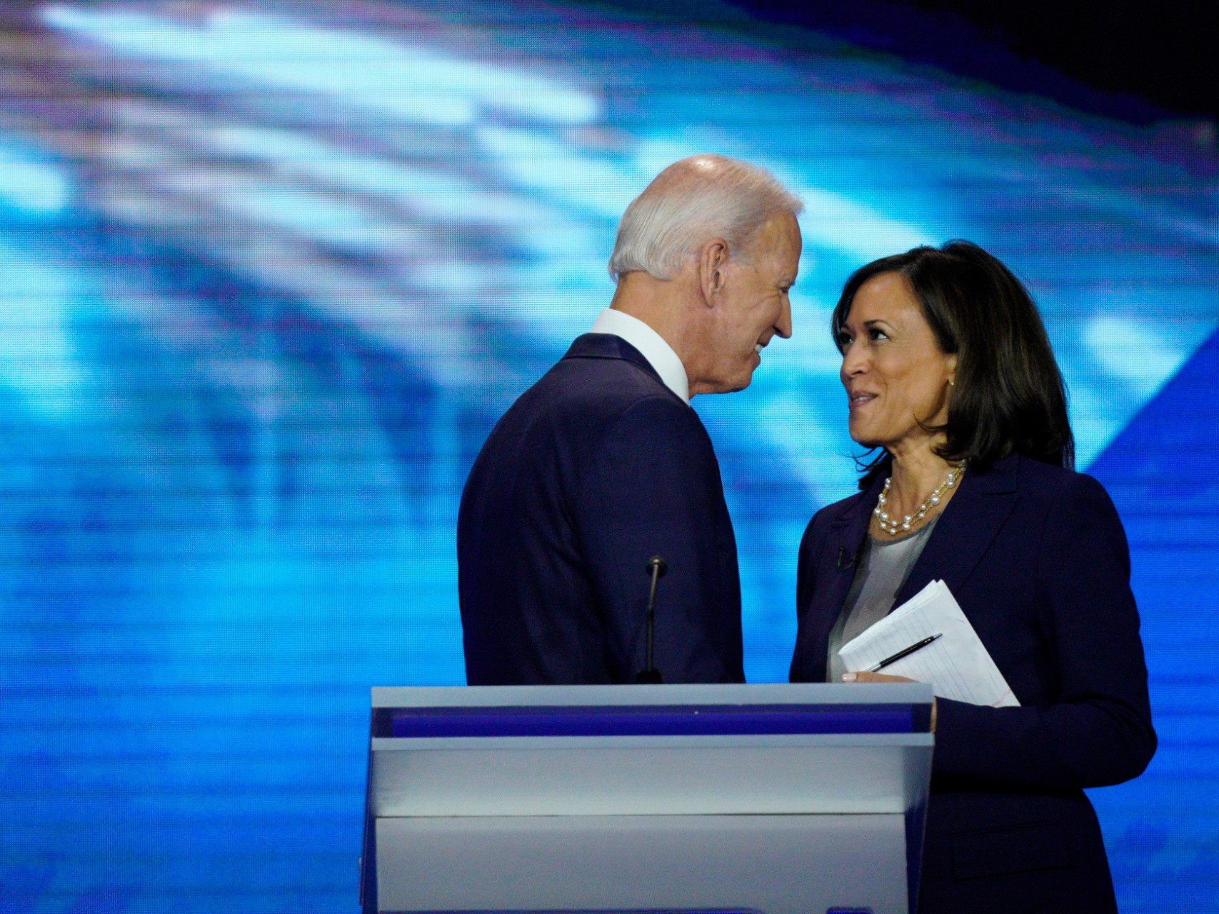 (Photo: Democratic presidential candidates former Vice President Joe Biden, left, and Sen. Kamala Harris, D-Calif. shake hands, Sept. 12, 2019, after a Democratic presidential primary debate hosted by ABC at Texas Southern University in Houston - AP Photo/David J. Phillip)