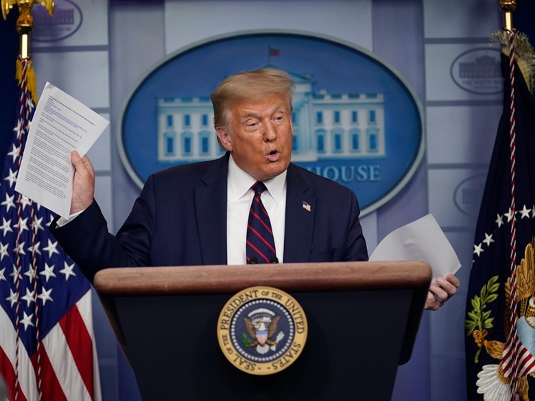 (Photo: President Donald Trump holds articles as he speaks during a news conference at the White House, Thursday, July 30, 2020, in Washington - AP Photo / Evan Vucci)