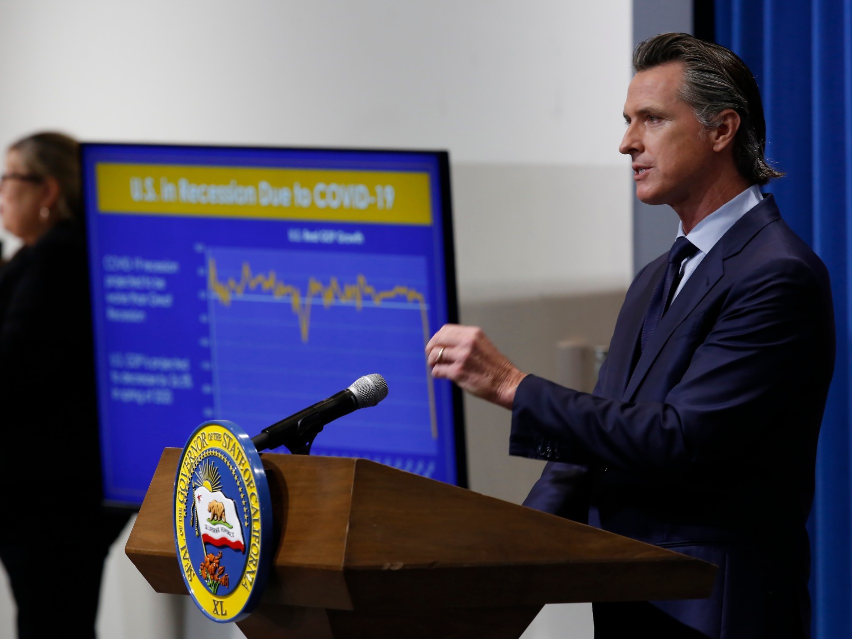 (Photo: In this Monday, April 6, 2020 file photo, Gov. Gavin Newsom discusses the acquisition of the Sleep Train Arena for use as a field hospital, after touring the facility, in Sacramento, Calif. - Rich Pedroncelli / AP Photo)