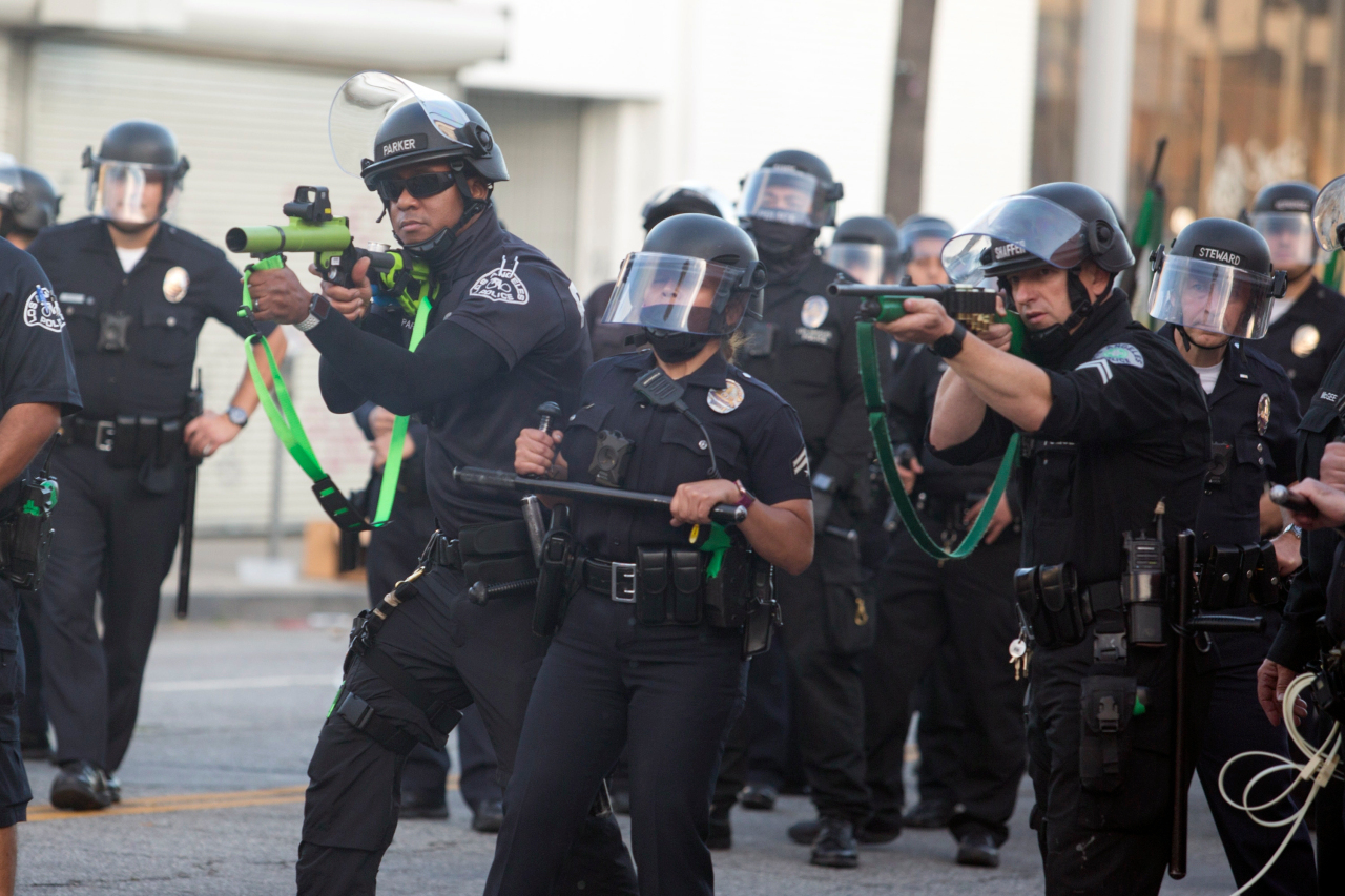 (Photo: Police aim weapons on demonstrators protesting the death of George Floyd in Los Angeles on May 30, 2020 - AP Photo/Ringo H.W. Chiu, File).