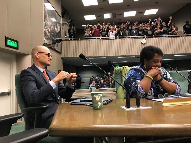 (Photo: Assemblymembers Kevin McCarty, left, and Shirley Weber, left, are coauthors of AB 392 - Ben Adler / Capital Public Radio)
